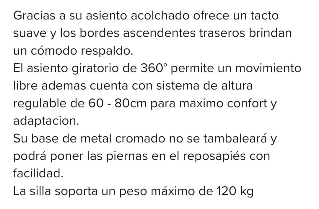 Asiento acolchado y giratorio 360°